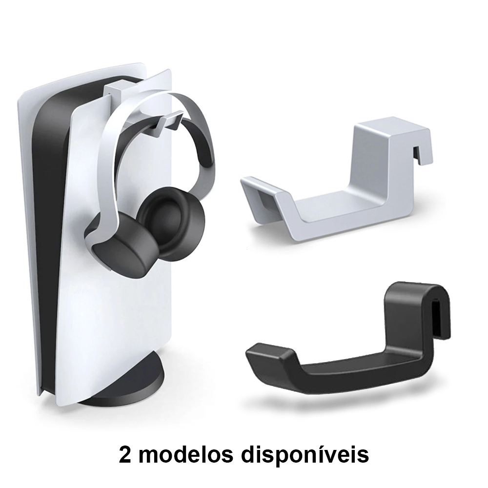 Suporte compacto e discreto, basta encaixar na tampa do Playstation 5 conforme mostrado na imagem do anúncio.